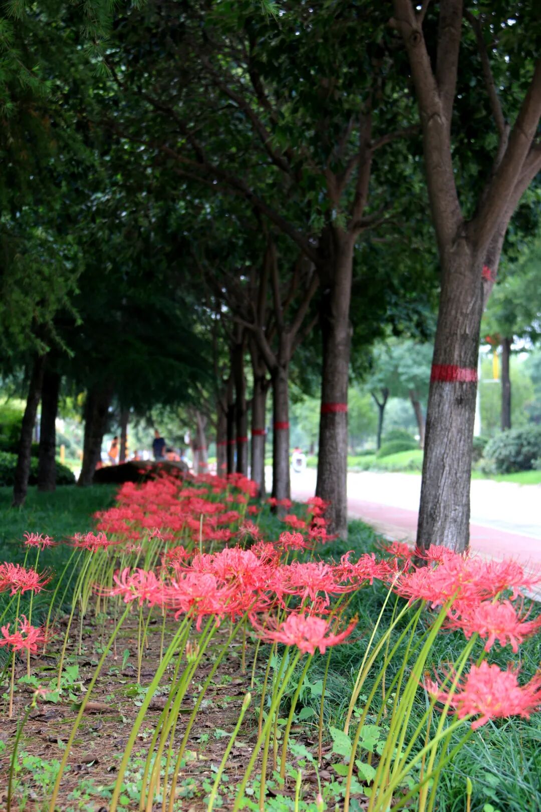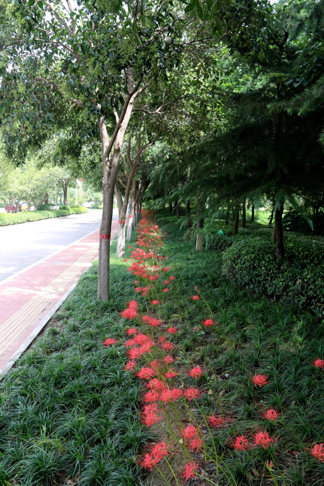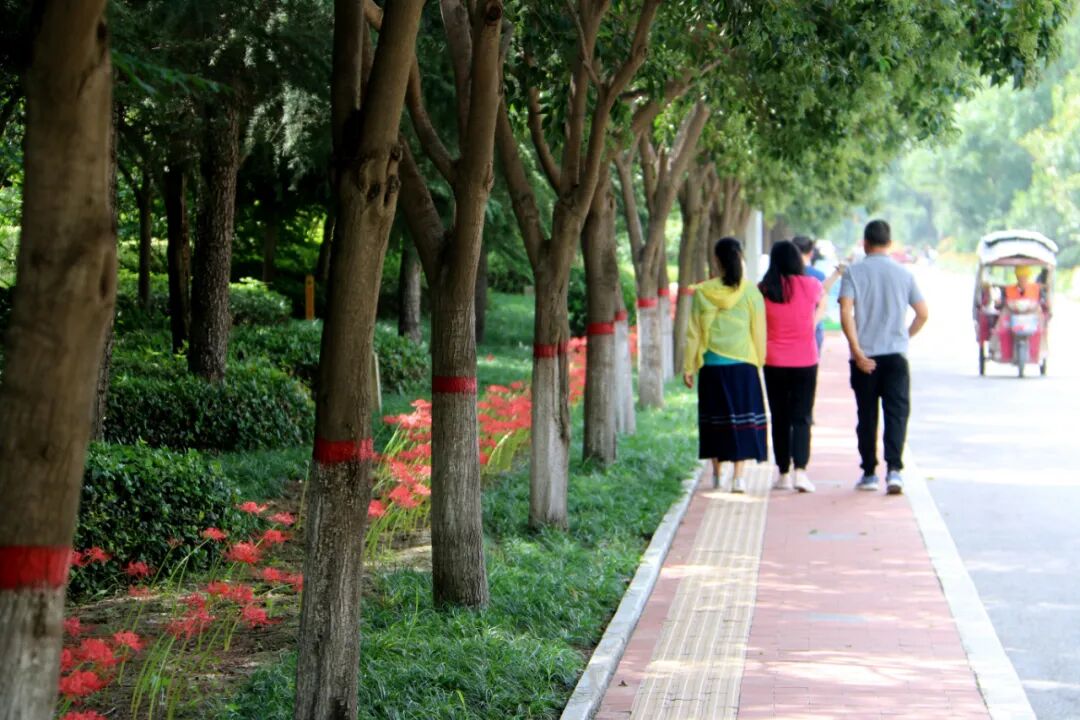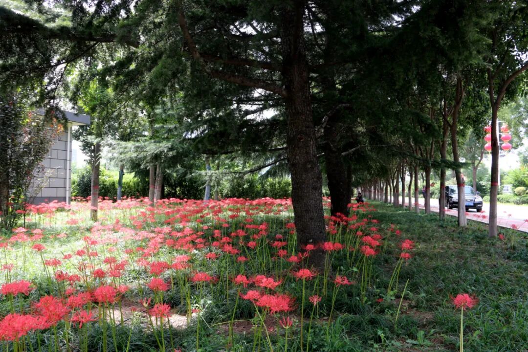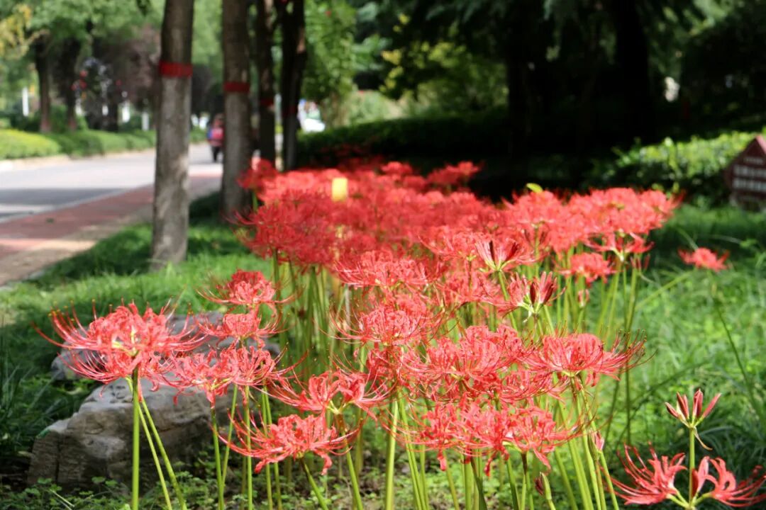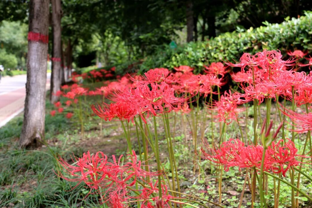 盼望已久的第十四屆運(yùn)動(dòng)會(huì)和殘?zhí)貖W會(huì)盛大開(kāi)幕,渭清路東側(cè),玉德路至渭河大街沿路盛開(kāi)石蒜花,組成鮮艷的“紅飄帶”為十四運(yùn)保駕護(hù)航。